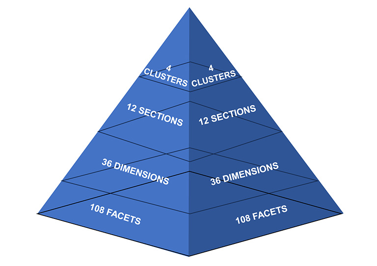 The WAVE questionnaire enables the analysis of the professional personality profile at various levels of generality, starting from 4 general areas, through 12 parts, 36 dimensions, up to 108 detailed aspects of behavior.